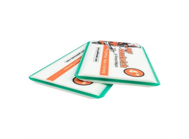 Monteringsskrape laget av sandwich av gummi/plast til montering av paint protection film samt solfilm.